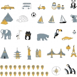 - Treści edukacyjne: kontynenty, wyspy i elementy uzupełniające do zabawnego poznawania świata.