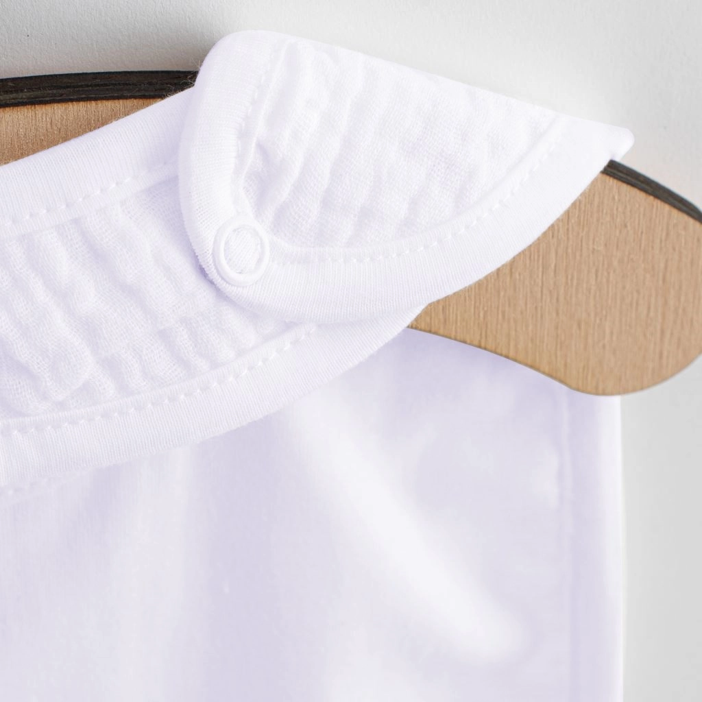 Praktyczny i delikatny muślinowy śliniak dla niemowląt od czeskiej marki NEW BABY Elizabeth. Dzięki podwójnemu zapięciu na napy rośnie razem z dzieckiem, oddychający muślin zapewnia cyrkulację powietrza, a 100% bawełna jest łagodna dla wrażliwej skóry. Trwały materiał doskonale znosi wielokrotne pranie i z czasem staje się jeszcze bardziej miękki.
