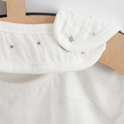 - Oddychający muślin – delikatny i lekki materiał idealny dla wrażliwej skóry.