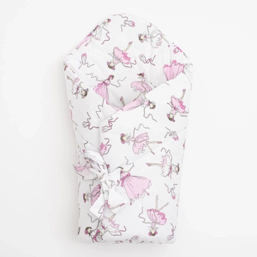 Miękki i bezpieczny rożek dla niemowląt New Baby Ballerina Bella zapewni maluszkowi komfort i ciepło od pierwszych dni życia. Wykonany w 100% z bawełny z hipoalergicznym wypełnieniem z poliestru, ozdobiony delikatnym nadrukiem tańczącej baleriny. Praktyczne wiązanie na sznureczek umożliwia łatwe dopasowanie do potrzeb. Wymiary ok. 75 × 75 cm.
