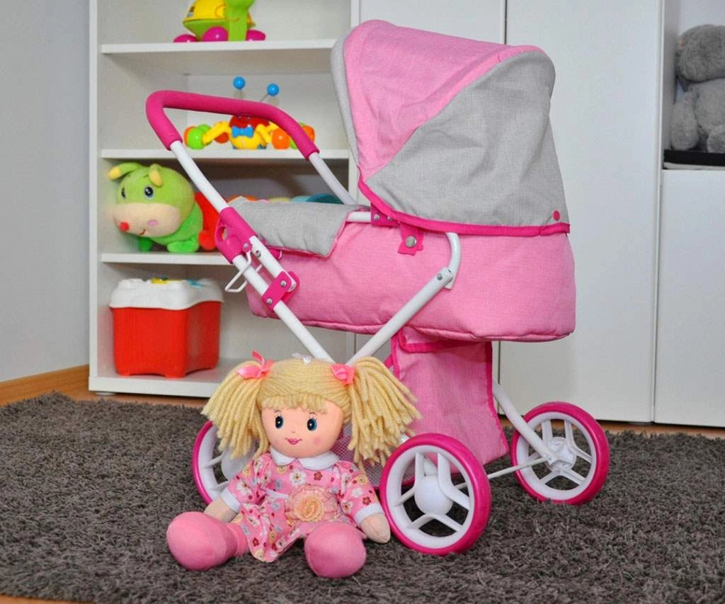 Lekki metalowy stelaż, piankowe kółka i miękka rączka gwarantują wygodną i cichą jazdę. Praktyczna dolna siatka na zakupy pomieści drobne akcesoria, a składana i zdejmowana budka chroni lalkę podczas zabawy. Bezpieczeństwo zapewnia blokada przed samoistnym złożeniem. W opakowaniu znajdziesz także poduszkę i kołderkę dla jeszcze bardziej realistycznej opieki nad lalką.