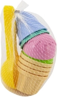 Rozwijaj dziecięcą wyobraźnię z zestawem foremek do lodów z piasku. Idealny na plażę, plac zabaw i do ogrodu, wykonany z bezpiecznego i trwałego plastiku w delikatnych pastelowych kolorach. Świetny do zabaw w odgrywanie ról, takich jak kawiarnia czy sklep, oraz do tworzenia piaskowych kulek lodów.