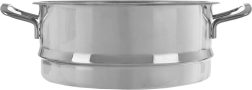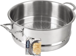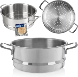 Dzięki perforowanemu dnu para cyrkuluje równomiernie, a profilowany pierścień na obwodzie zapewnia stabilne osadzenie na garnku i minimalizuje ucieczkę pary. Nity mocujące uchwyty ułatwiają bezpieczne przenoszenie. Wkładka jest kompatybilna z garnkami o średnicy 24 cm i bez trudu umyjesz ją w zmywarce.