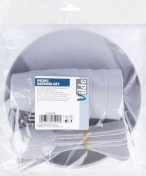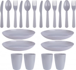 - 4× kubek, 4× talerz, 4× nóż, 4× widelec, 4× łyżka