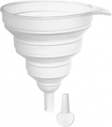 Składany lejek to niezbędny pomocnik w każdej kuchni. Dzięki silikonowemu wykonaniu jest łatwy do przechowywania, stabilny i przy prawidłowym użytkowaniu posłuży przez długie lata. Zintegrowana skala pomiarowa 50–300 ml ułatwia precyzyjne odmierzanie zarówno płynów, jak i produktów sypkich.