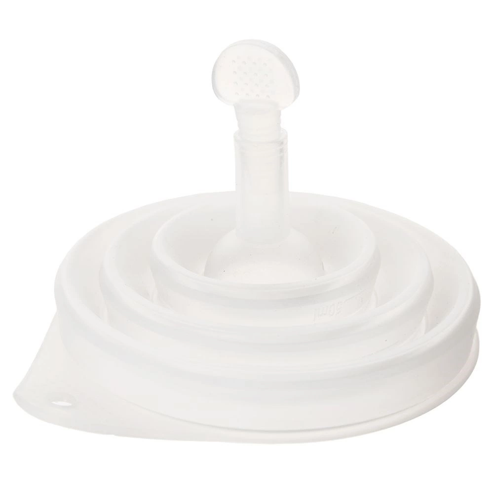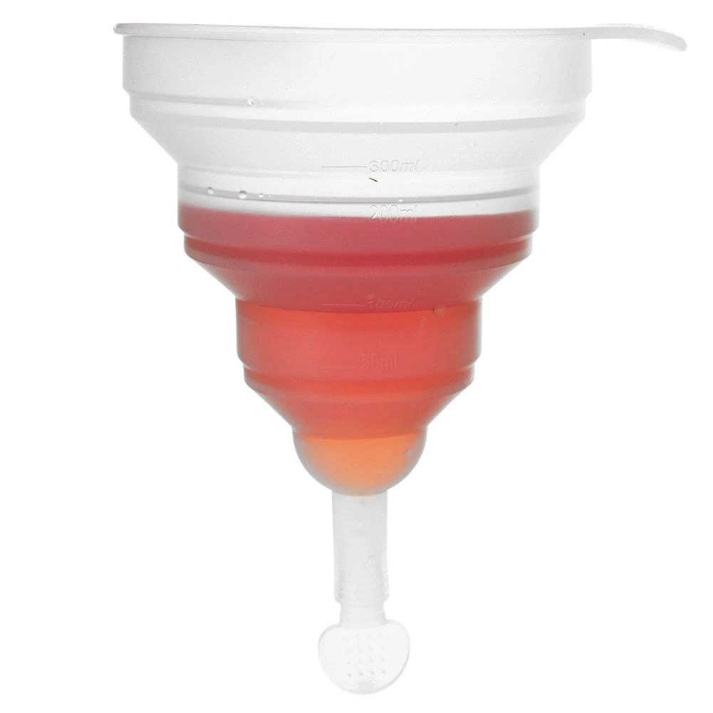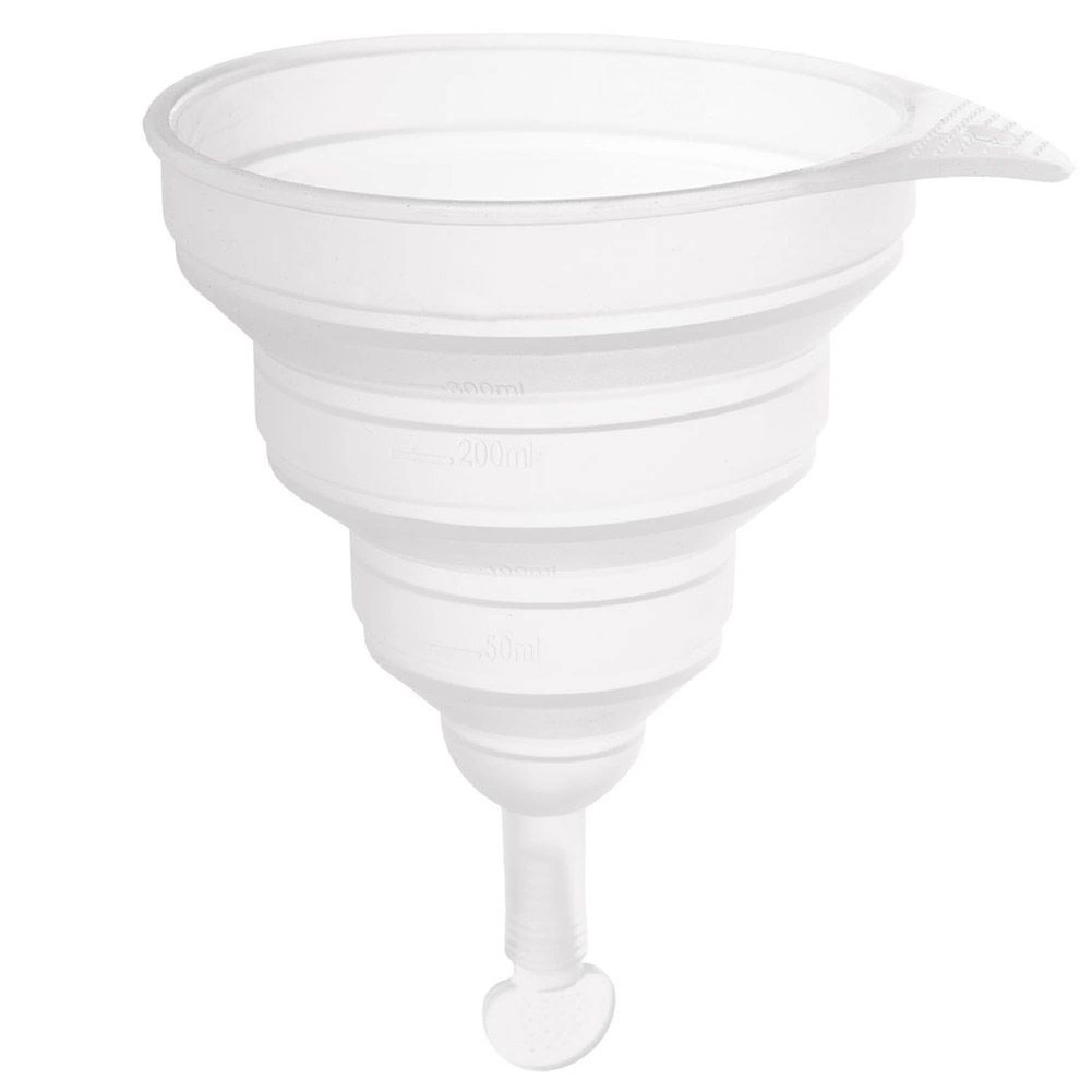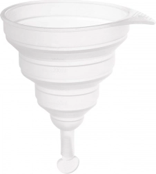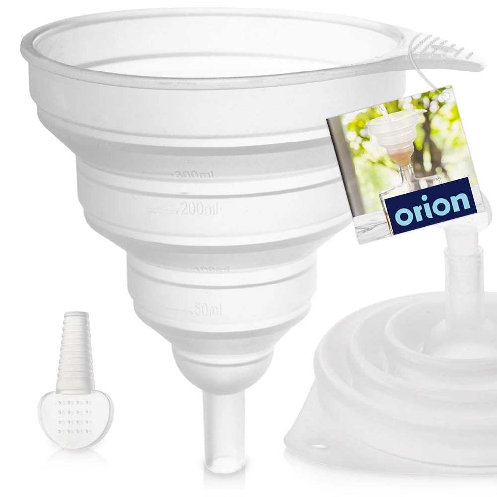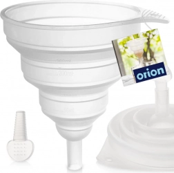 Praktyczny składany kuchenny lejek o średnicy 12 cm i wysokości 17 cm z zatyczką oraz zintegrowaną miarką. Wykonany z wytrzymałego silikonu, oszczędza miejsce w szufladzie i nadaje się do napełniania butelek oraz pojemników. Odporność termiczna do 100 °C, możliwość mycia w zmywarce (bez zatyczki). Idealny do przelewania soków, likierów, wina czy piwa oraz do precyzyjnego odmierzania 50–300 ml. Wytrzymały materiał, składana konstrukcja, skala pomiarowa, łatwa pielęgnacja.