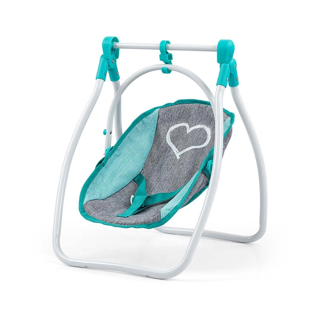 Bezpieczna huśtawka ze stabilną konstrukcją w kształcie A i wygodnym materiałowym siedziskiem zapewni mnóstwo frajdy podczas opieki nad lalką.