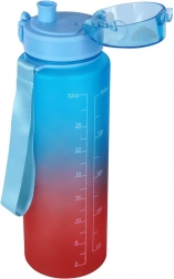 Praktyczna sportowa butelka o pojemności 1 l z ombre w odcieniach niebieskiego i czerwonego utrzyma Cię nawodnionym przez cały dzień. Ma znaczniki czasu i motywacyjne napisy, skalę w ml i fl oz, szczelną pokrywkę typu flip z blokadą oraz wygodny ustnik do obsługi jedną ręką. Lekka, wytrzymała i z pętlą do łatwego noszenia na sport, do pracy i na wycieczki.