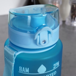 Na korpusie butelki znajdziesz znaczniki czasu od rana do wieczora oraz motywacyjne napisy, które poprowadzą Cię do regularnego picia i osiągnięcia dziennego celu.