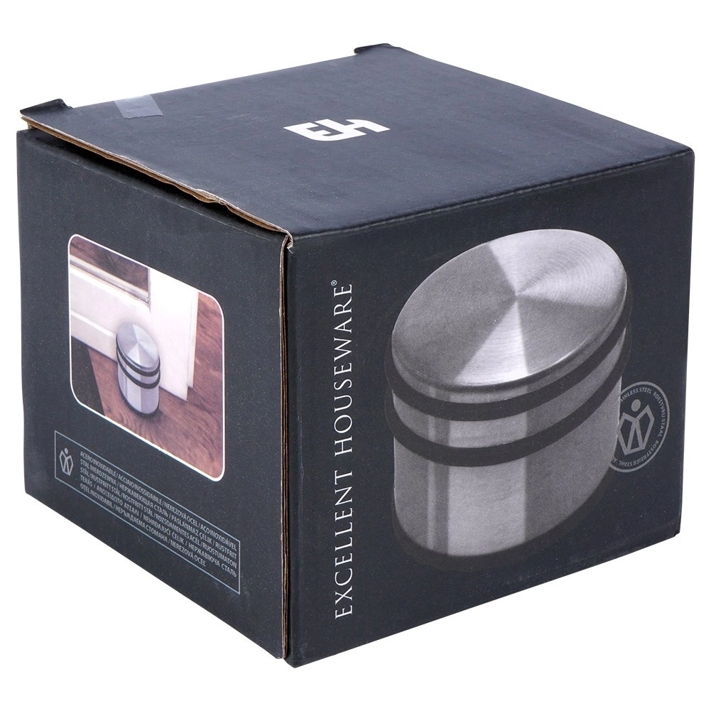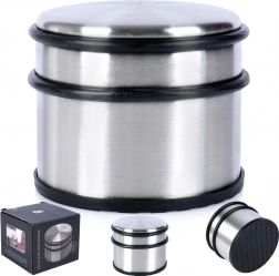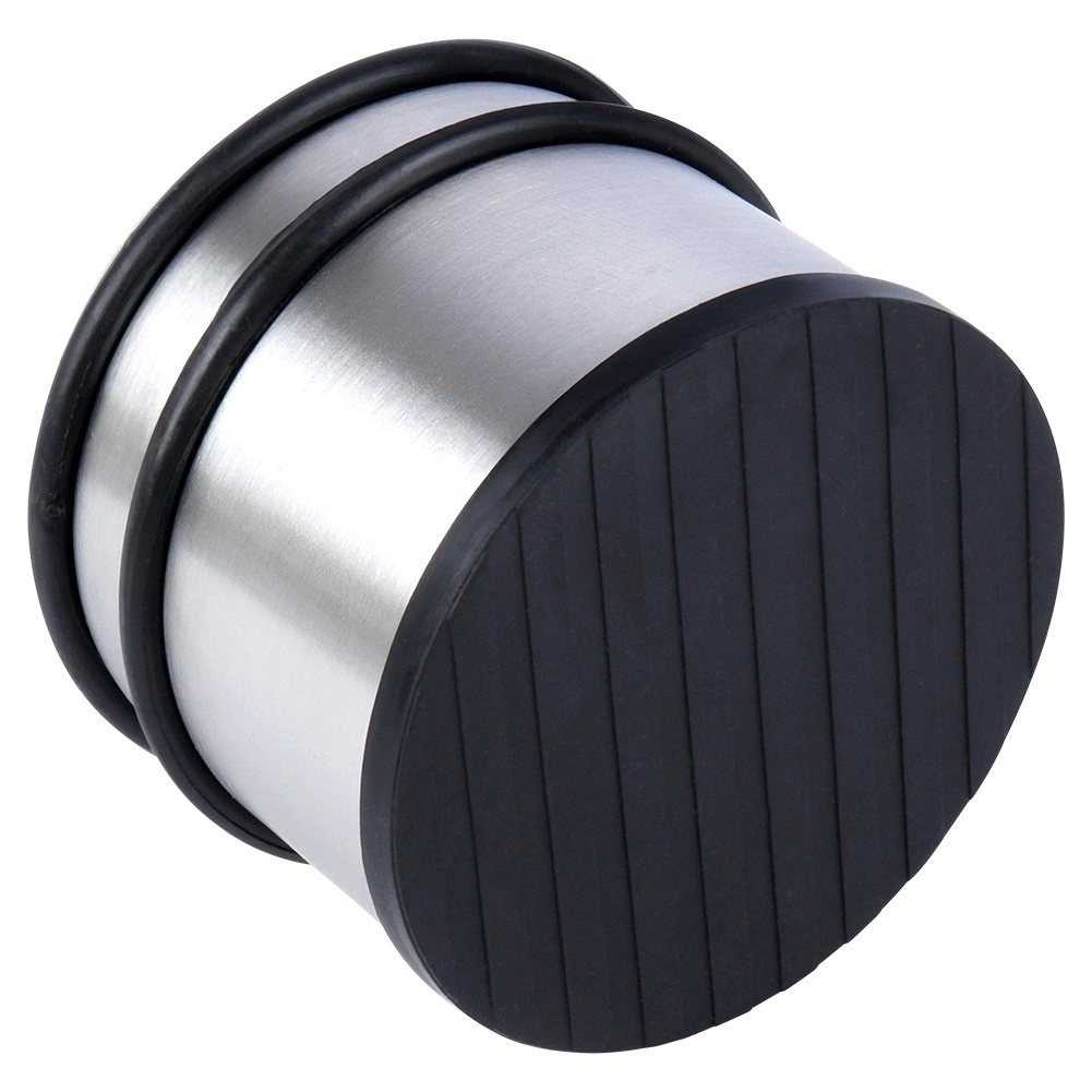 Solidny odbojnik do drzwi o nowoczesnym, nierdzewnym wykończeniu sprawi, że drzwi nie będą samoczynnie się domykać ani uderzać w ściany i meble. Mastywna konstrukcja oraz antypoślizgowa gumowa podstawa gwarantują stabilność na większości typów podłóg.