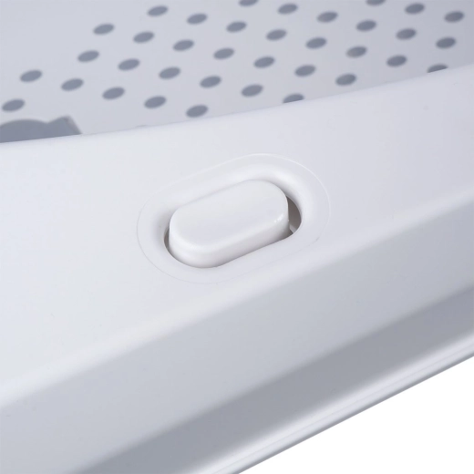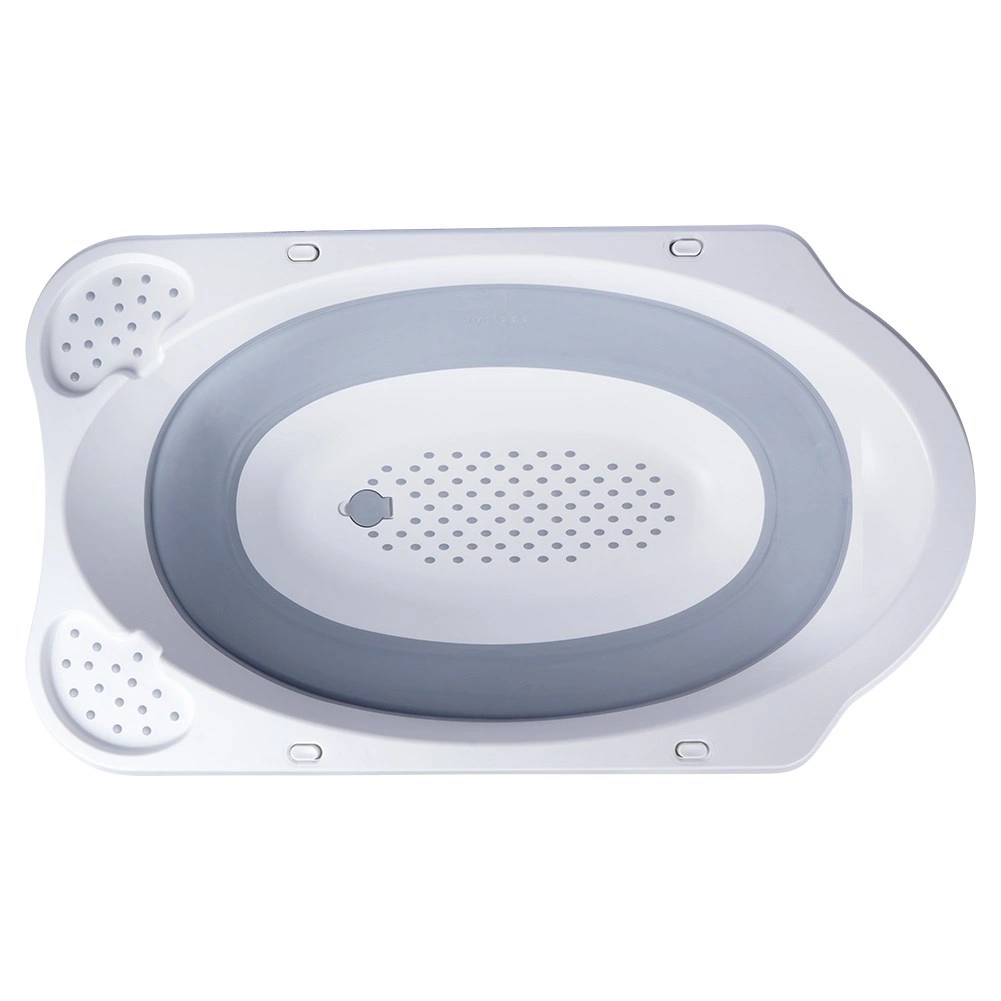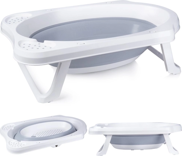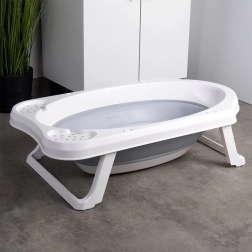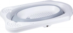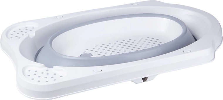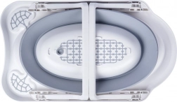 Bezpieczeństwo podczas kąpieli zapewniają rozkładane nogi z zabezpieczeniem przed samoczynnym złożeniem oraz antypoślizgowe powierzchnie, które dają pewność także na gładkim podłożu. Korek spustowy umożliwia szybkie i wygodne wypuszczenie wody prosto do wanny lub umywalki.