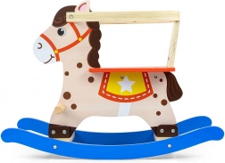 Konik na biegunach Lucky w kolorach niebieskim i czerwonym łączy klasyczną zabawę z nowoczesnym wzornictwem. Wykonany jest z wytrzymałego drewna (MDF + sklejka) z nietoksycznymi, pastelowymi farbami i spełnia normy CE oraz EN 71. Dzięki wyjmowanej barierce zabezpieczającej nadaje się zarówno dla najmłodszych jeźdźców, jak i dla starszych dzieci.