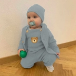 Stylowe niemowlęce ogrodniczki NEW BABY Oliver w szarym kolorze zachwycają uroczą naszywką misia i wygodnym krojem. Wykonane z 100% bawełny, mają zapięcie na guziki na ramiączkach i świetnie sprawdzają się przez cały rok. Miękki i oddychający materiał zapewnia maluszkowi maksymalny komfort, a plecki pozostają stale osłonięte.