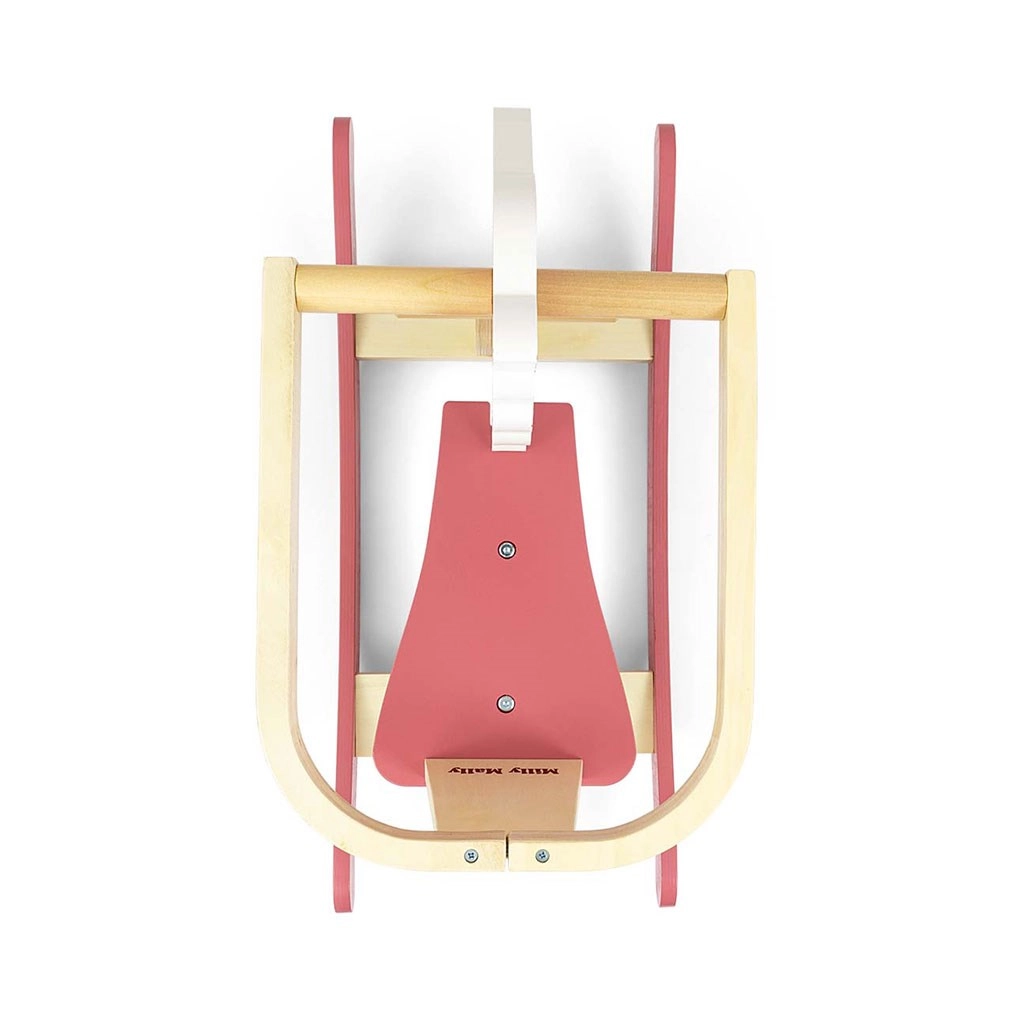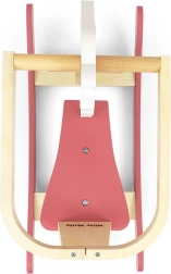 Drewniane uchwyty, podnóżki i profilowane płozy pomagają dzieciom utrzymać równowagę i uczą koordynacji ruchów.
