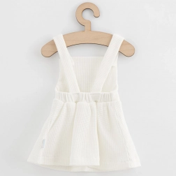 Ta dziewczęca sukienka ogrodniczka NEW BABY Laura wykonana jest z miękkiej i oddychającej 100% bawełny, która delikatnie otula wrażliwą dziecięcą skórę. Stonowany biały kolor i strukturalna dzianina nadają modelowi elegancki wygląd, który sprawdzi się w domu i w gościach.