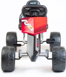 Duże koła z tworzywa z łożyskami zapewniają płynną i cichą jazdę po różnych nawierzchniach bez obaw o przebicie. Osłona łańcucha i plastikowe ochraniacze podnoszą bezpieczeństwo podczas zabawy. Gokart spełnia europejskie normy bezpieczeństwa i jest odpowiedni dla dzieci w wieku 3–8 lat o maksymalnym udźwigu do 30 kg.