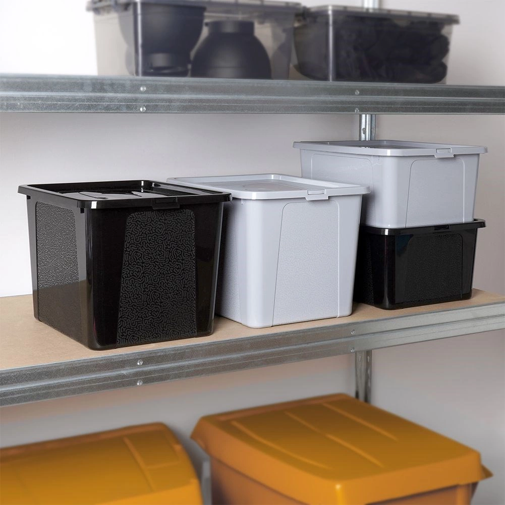 Wykorzystasz je do przejrzystego przechowywania pościeli, zabawek, ubrań, tekstyliów, akcesoriów kuchennych, narzędzi, książek czy dokumentów. Eleganckie czarne wykonanie z subtelnym reliefem świetnie wpasuje się zarówno w nowoczesne wnętrza, jak i pomieszczenia techniczne.