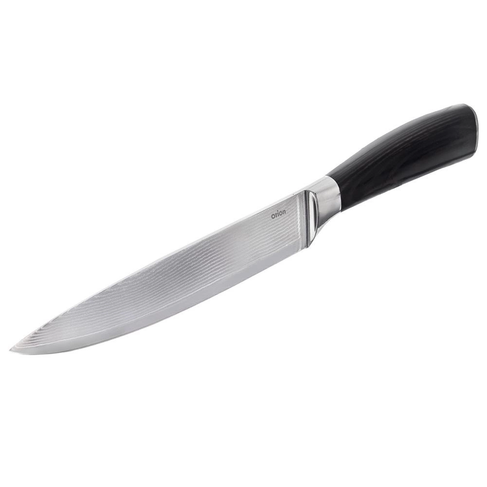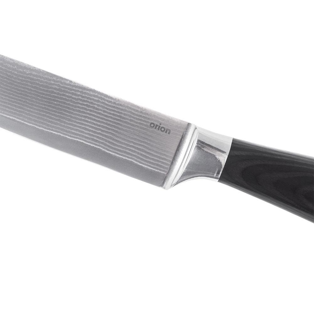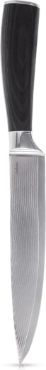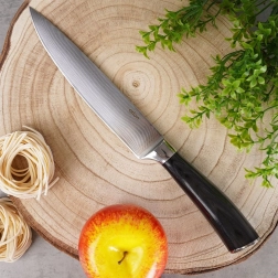 Uniwersalny kuchenny nóż o całkowitej długości 30,5 cm i ostrzu 17 cm jest idealny do codziennego krojenia, siekania warzyw, owoców i ziół. Wykonany z 67-warstwowej stali damasceńskiej dla wyjątkowej ostrości i trwałości, z ergonomiczną drewnianą rękojeścią z drewna pakka, która odporna jest na wilgoć, ciepło i chemikalia. Świetne wyważenie i wygodny chwyt zapewniają precyzyjną i bezpieczną pracę w kuchni.