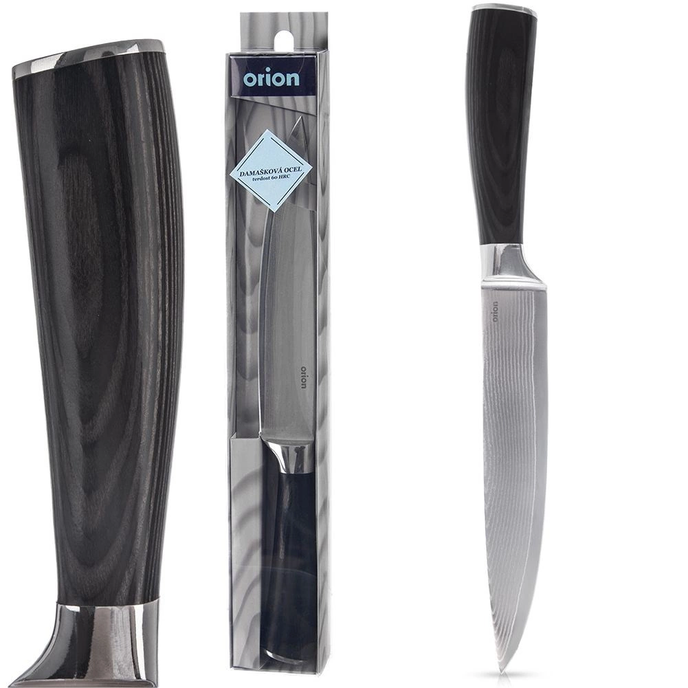 Odkryj precyzyjny kuchenny nóż, który poradzi sobie z delikatnym i twardszym krojeniem. Dzięki stali damasceńskiej (67 warstw) oferuje długotrwałą ostrość, wysoką wytrzymałość oraz charakterystyczny wzór na klindze. Ergonomiczna rękojeść z drewna pakka doskonale leży w dłoni i jest odporna na wilgoć oraz ciepło, dzięki czemu nóż pozostaje stabilny i bezpieczny nawet przy dłuższym użytkowaniu.