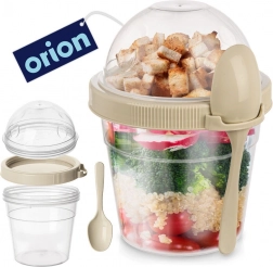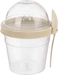 Praktyczny kubek na jogurt z oddzielną miseczką na musli oraz zintegrowaną łyżeczką jest idealny w podróży, do pracy i do szkoły. Oferuje pojemność 400 ml na jogurt oraz 150 ml na chrupiące dodatki, szczelną pokrywkę chroniącą przed wyciekaniem i wytrzymałe wykonanie bez BPA, odpowiednie do zmywarki, zamrażarki i kuchenki mikrofalowej (bez pokrywki).