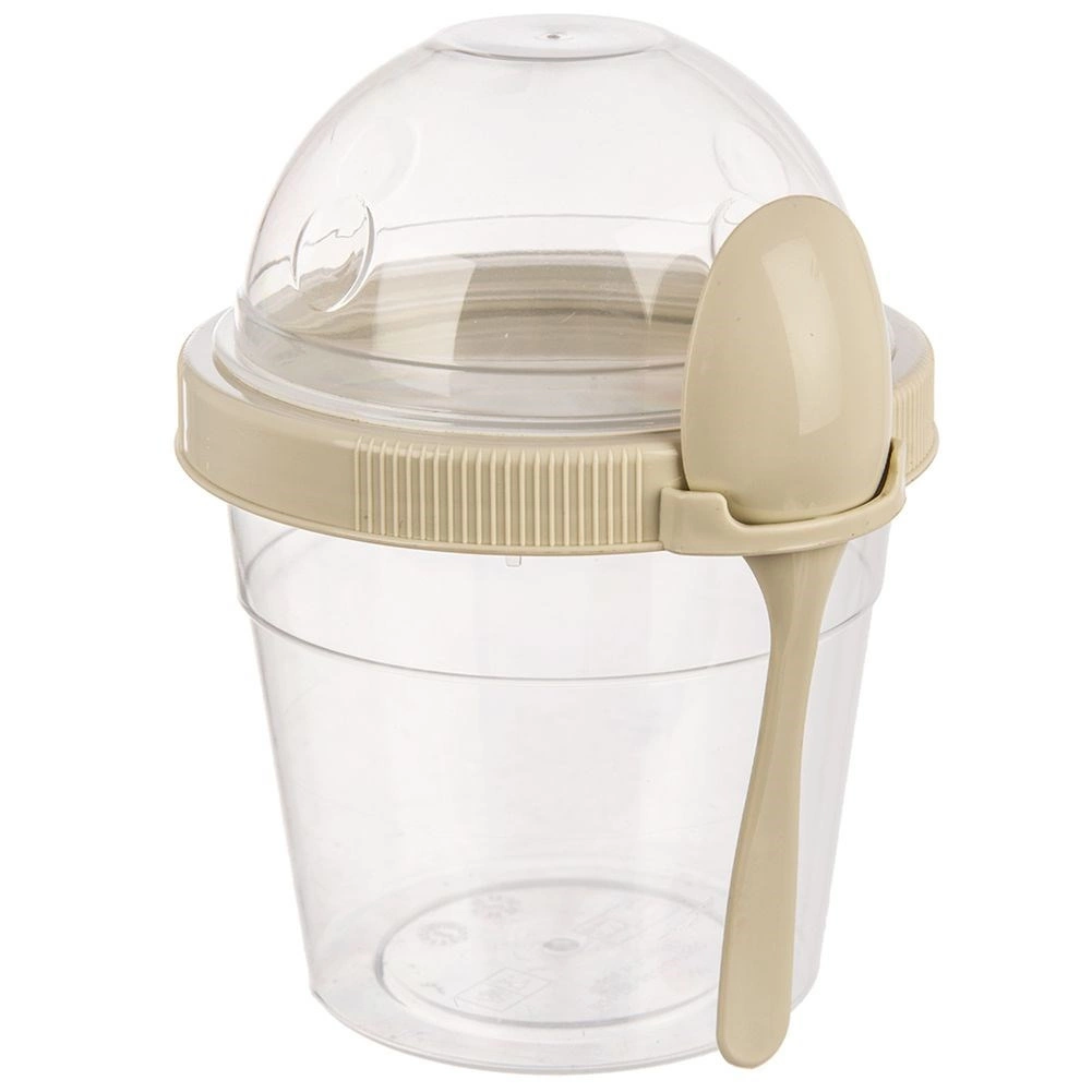 Ciesz się świeżym jogurtem zawsze i wszędzie. Dwupoziomowy kubek utrzymuje jogurt i chrupiące dodatki oddzielnie, dzięki czemu pozostają świeże aż do chwili, gdy je wymieszasz. Przezroczyste korpus umożliwia szybką kontrolę zawartości bez otwierania, a solidna pokrywka zapewnia niezawodną szczelność.