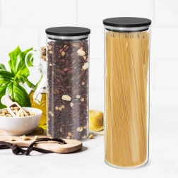 Ten wysoki, smukły szklany pojemnik stanie się stylowym i praktycznym pomocnikiem w organizacji spiżarni i blatu kuchennego. Szkło borokrzemowe jest lekkie, wytrzymałe i odporne na zmiany temperatury, a silikonowa uszczelka w pokrywce zapewnia niezawodną hermetyczność i dłuższą świeżość produktów.