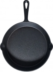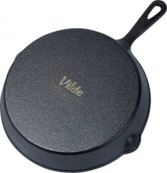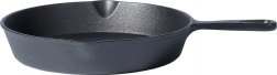 Ta w całości żeliwna patelnia w czarnym kolorze jest wyjątkowo trwała i długowieczna. Żeliwo świetnie rozprowadza i zatrzymuje ciepło, dzięki czemu uzyskasz idealne wypieczenie mięsa, warzyw i ziemniaków, a potrawy dłużej pozostaną ciepłe. Dwa boczne dzióbki do nalewania ułatwiają zlewanie soków i sosów bez bałaganu.