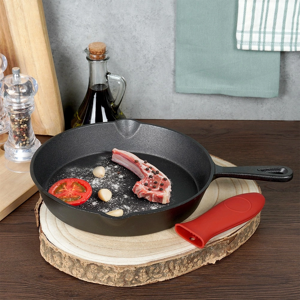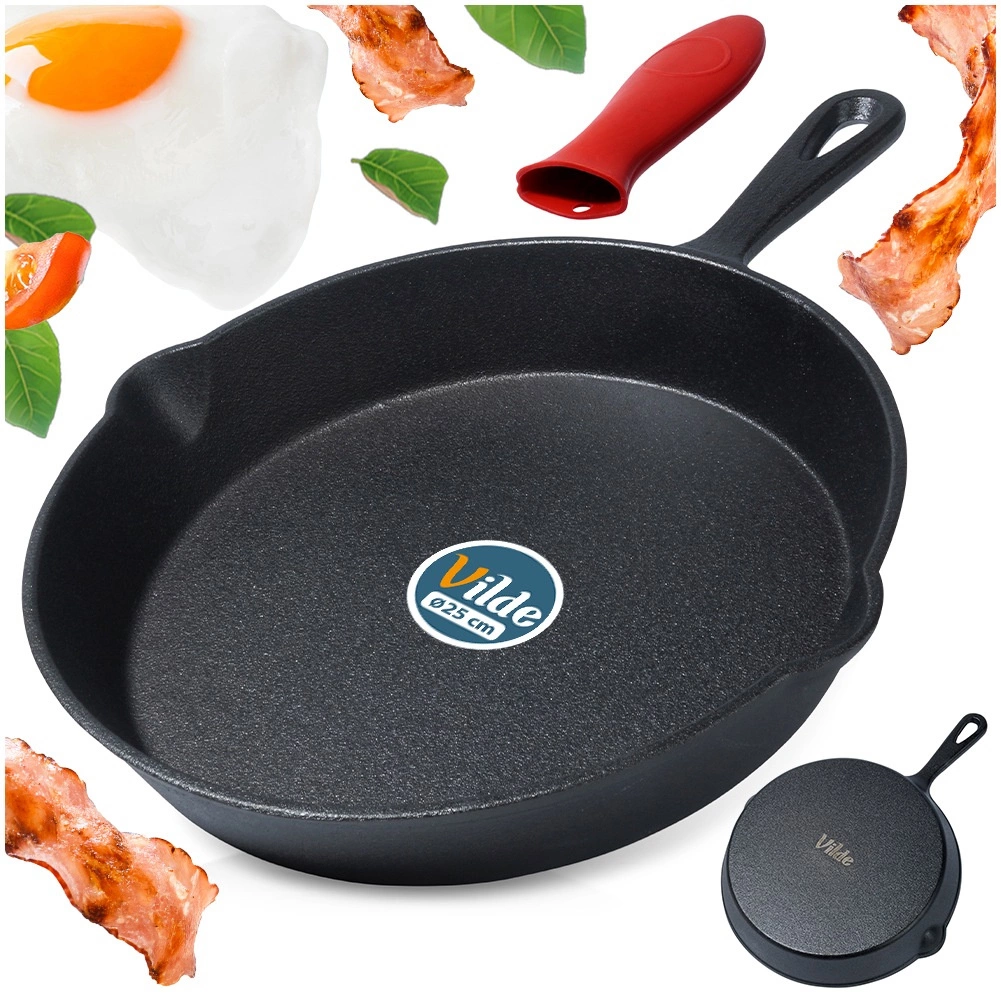 W zestawie znajduje się czerwony silikonowy ochraniacz dla bezpiecznego operowania gorącym uchwytem. Patelnia nadaje się do wszystkich typów kuchenek, w tym indukcji, do piekarnika, na grill i bezpośrednio nad otwarte ognisko – idealna do kuchni, na kemping i ogrodowe grillowanie.