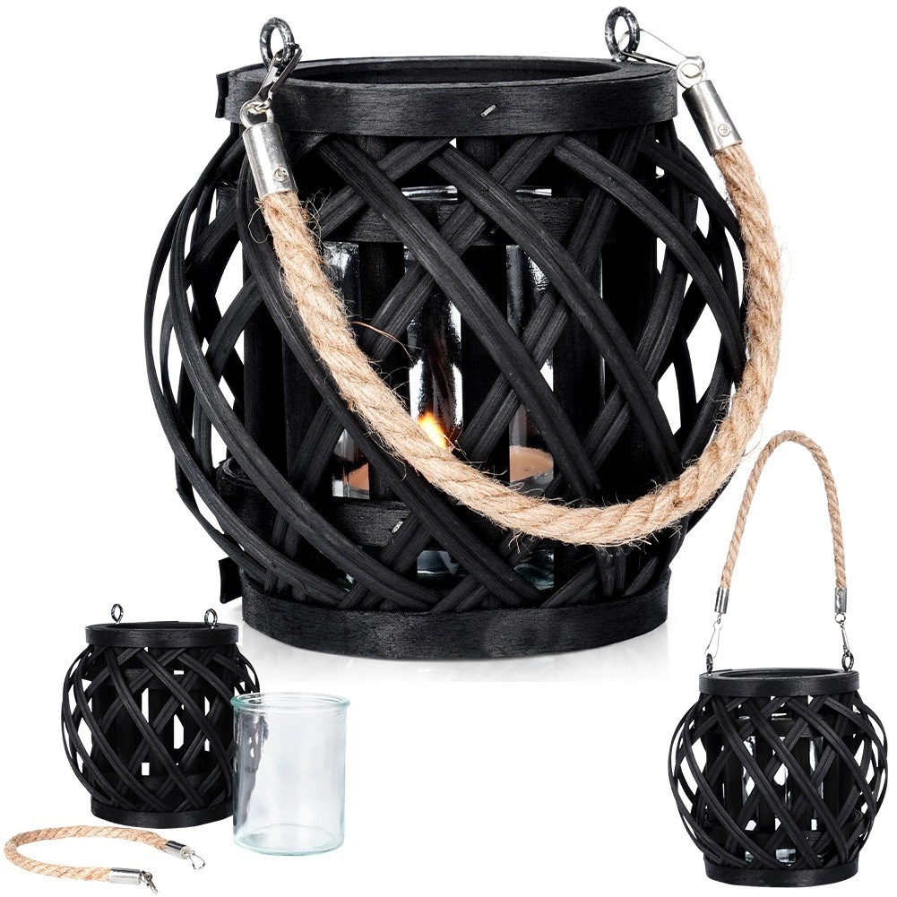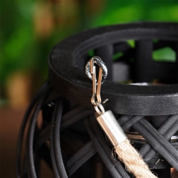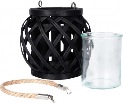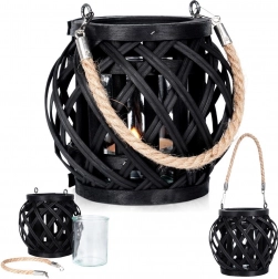 Stylowy czarny lampion z bambusa ze szklaną wkładką wprowadzi do Twojego wnętrza i na zewnątrz przytulne, ambientowe światło oraz boho atmosferę. Dzięki praktycznemu jutowemu uchwytowi możesz go łatwo zawiesić i przenosić. Szklany cylinder chroni płomień i umożliwia bezpieczne użycie z podgrzewaczem lub świecą o średnicy do 6,5 cm.