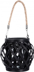 Ten dekoracyjny lampion z naturalnego bambusowego drewna lakierowanego na czarno jest idealny na wieczorne chwile na balkonie, tarasie i w salonie. Otwarta pleciona konstrukcja tworzy efektowne odblaski światła i dodaje przestrzeni przyjemnej, kojącej atmosfery.