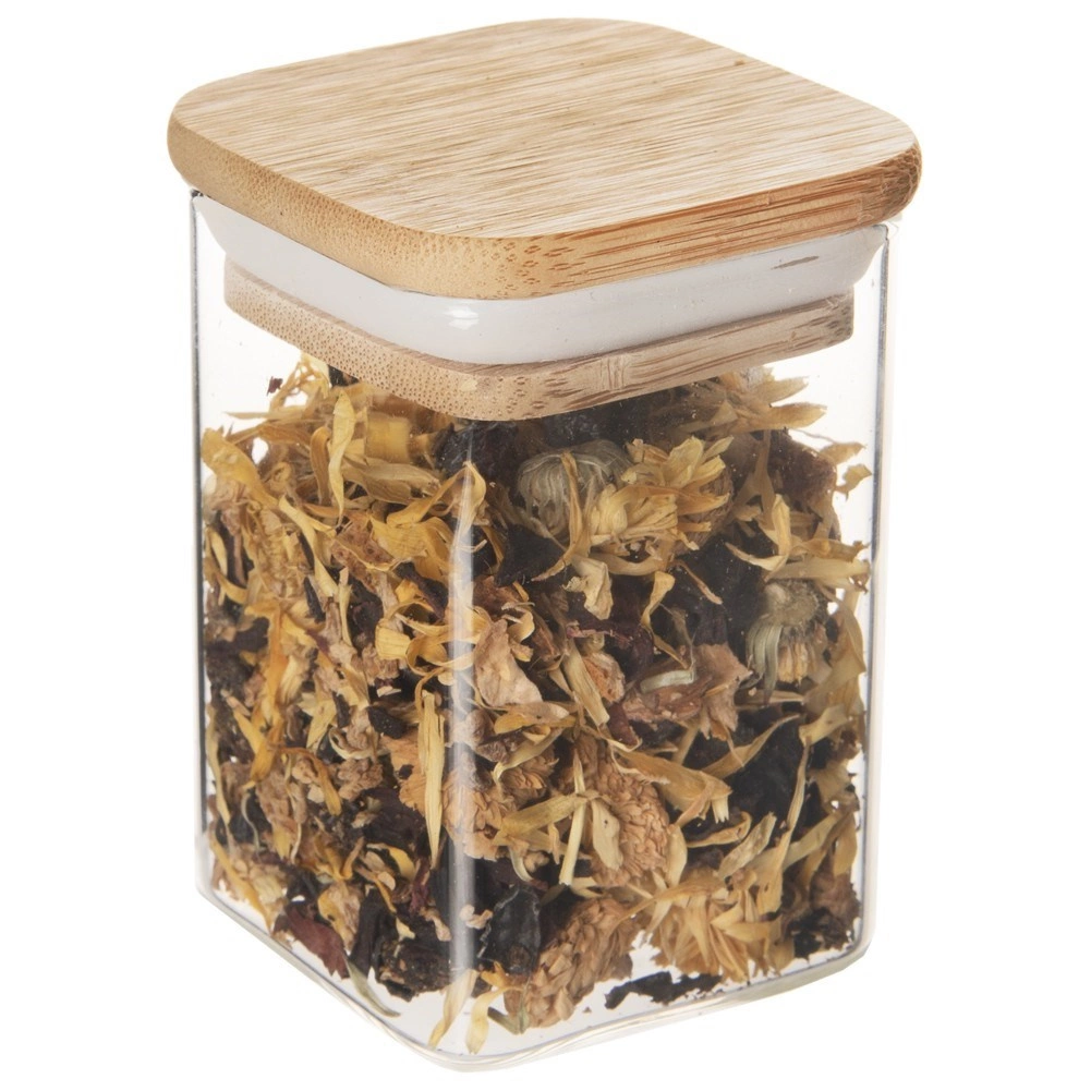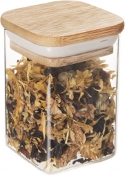 Elegancki szklany pojemnik o pojemności 200 ml z bambusową pokrywką i silikonową uszczelką dłużej utrzyma Twoją żywność świeżą. Wykonany z wytrzymałego szkła borokrzemowego, ma kompaktowe wymiary 6 × 6 × 8,5 cm i nowoczesny kwadratowy kształt. Idealny na kawę, herbatę, przyprawy, orzechy oraz inne produkty sypkie. Dzięki hermetycznemu zamknięciu chroni aromat i smak, a do tego świetnie pasuje do każdej kuchni.