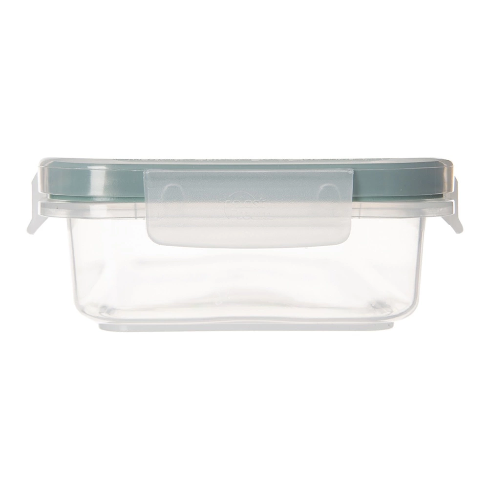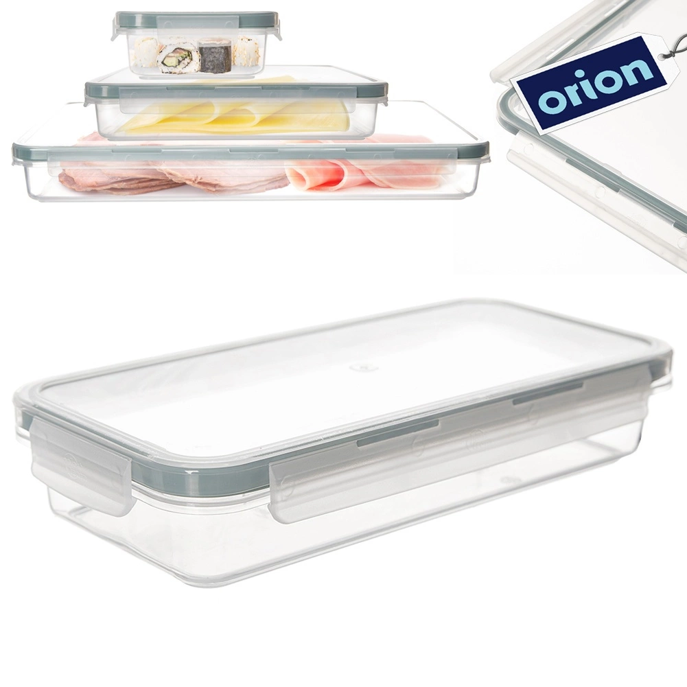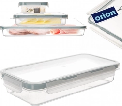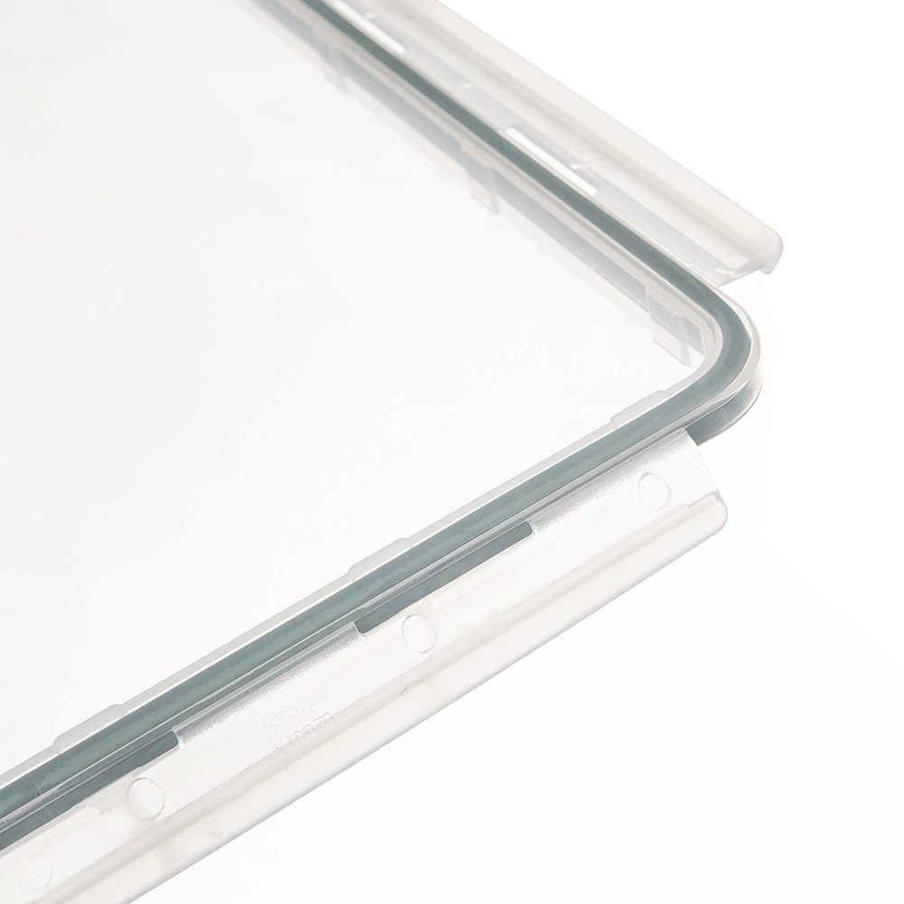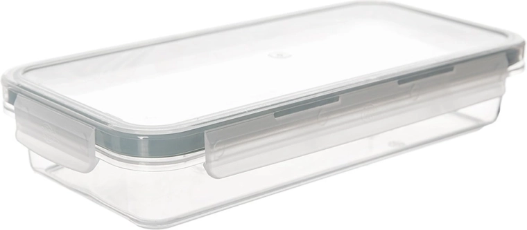 Uniwersalny, niski pojemnik na żywność z wytrzymałego, przezroczystego plastiku świetnie sprawdza się do przechowywania, transportu i organizacji posiłków. Dzięki solidnej pokrywce z 4 klipsami oraz wysokiej jakości silikonowej uszczelce zawartość jest chroniona przed powietrzem i wilgocią, dzięki czemu żywność pozostaje dłużej świeża.