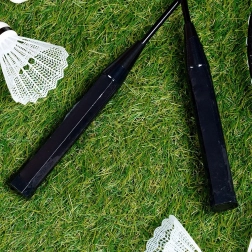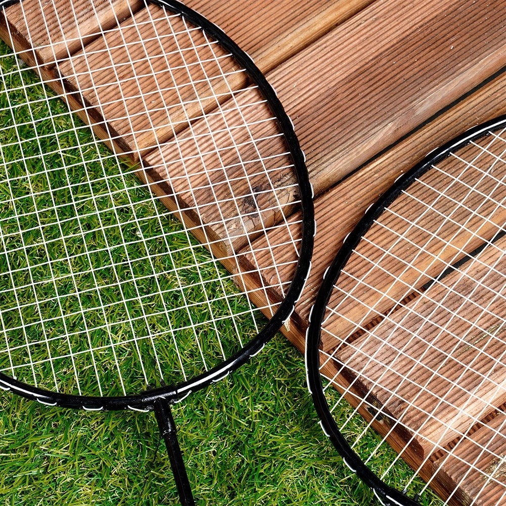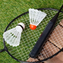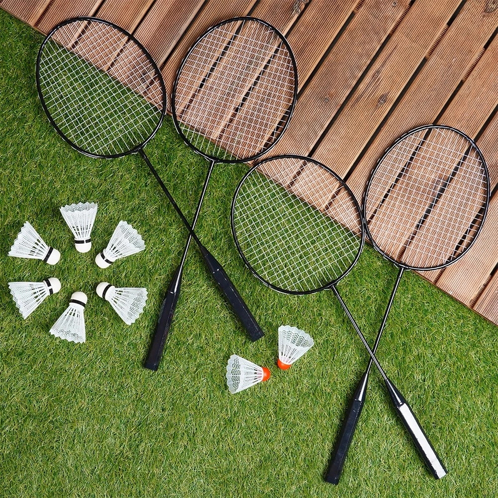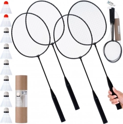 Ten rodzinny i przyjazny zestaw do badmintona jest idealny do meczów deblowych oraz swobodnego odbijania. Cztery lekkie, a zarazem solidne rakiety z jakościowym naciągiem gwarantują pewne uderzenie i łatwe manewrowanie. W zestawie znajduje się 8 plastikowych lotek z dwoma typami główek dla różnego odczucia gry i lepszej widoczności.
