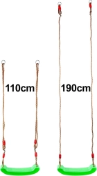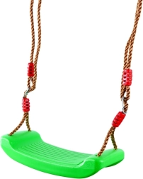 Odkryj radość ruchu na świeżym powietrzu z wytrzymałą huśtawką dla dzieci z siedziskiem. Siedzisko z wysokiej jakości plastiku w zielonym kolorze jest profilowane dla stabilności i komfortu, co zmniejsza ryzyko ześlizgnięcia i zwiększa bezpieczeństwo podczas huśtania. Liny z metalowymi oczkami oraz klamrami do regulacji umożliwiają szybkie ustawienie odpowiedniej wysokości.