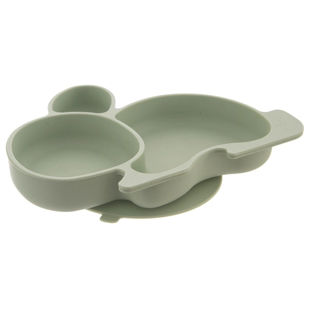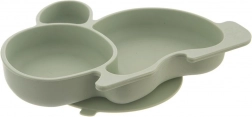 Dziecięcy silikonowy talerzyk z trzema oddzielnymi przegródkami pomaga serwować urozmaicone porcje i utrzymać poszczególne składniki oddzielnie. Duża i bardzo mocna przyssawka na spodzie minimalizuje przesuwanie i przewracanie, dlatego jest idealny do nauki samodzielnego jedzenia.