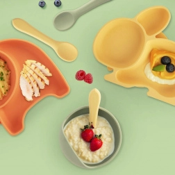 Praktyczna silikonowa łyżeczka dla dzieci o długości 14 cm dla maluchów do 3 lat. Jest miękka i bezpieczna dla wrażliwych dziąseł, bez ostrych krawędzi, ma ergonomiczny kształt dla małych rączek i można ją myć w zmywarce. Idealna do nauki samodzielnego jedzenia.