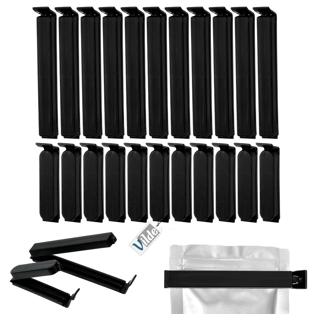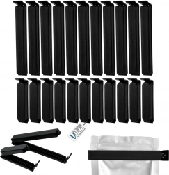 Opakowanie zawiera 11 dłuższych i 11 krótszych klipsów. Dłuższe do szerszych torebek, krótsze do mniejszych opakowań z przyprawami lub przekąskami.