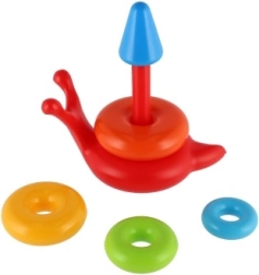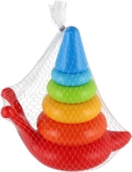 Kolorowa piramida składana jest idealną zabawką do rozwoju umiejętności motorycznych dzieci. Składa się z kilku kolorowych kółek i bazy w kształcie uśmiechniętego ślimaka.