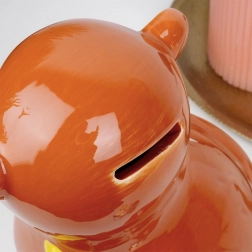 Gładka, błyszcząca powierzchnia jest łatwa w czyszczeniu i wygląda elegancko. Detale twarzy i banana nadają skarbonce figlarny charakter.