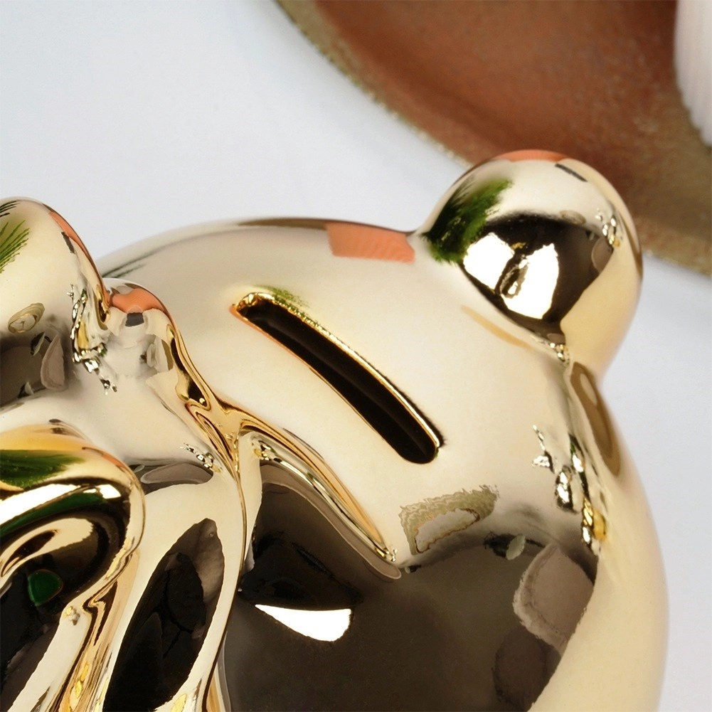 Elegancka złota skarbonka w kształcie jednorożca to zarówno dekoracja, jak i praktyczny pomocnik do codziennego oszczędzania. Dzięki lustrzanej, połyskującej powierzchni doda pomieszczeniu nuty luksusu i stanie się wyrazistym dodatkiem na półce, biurku czy w pokoju dziecięcym.