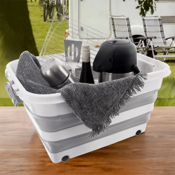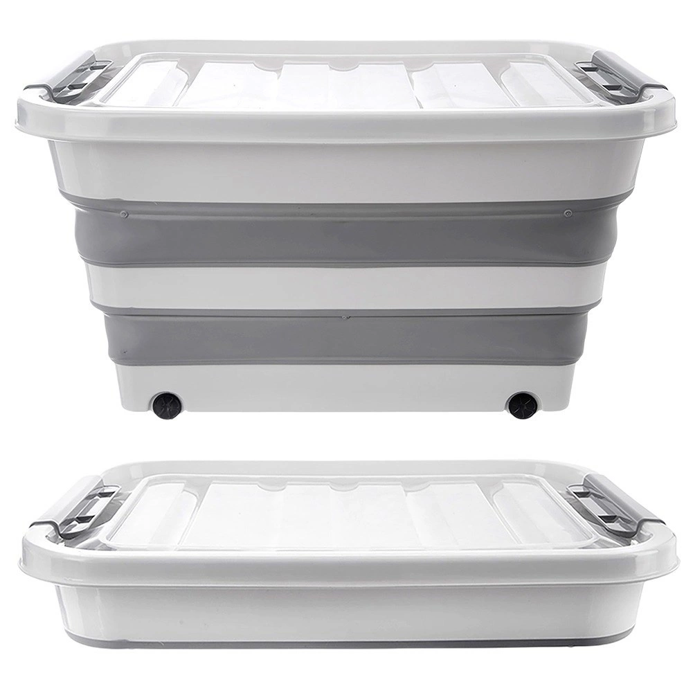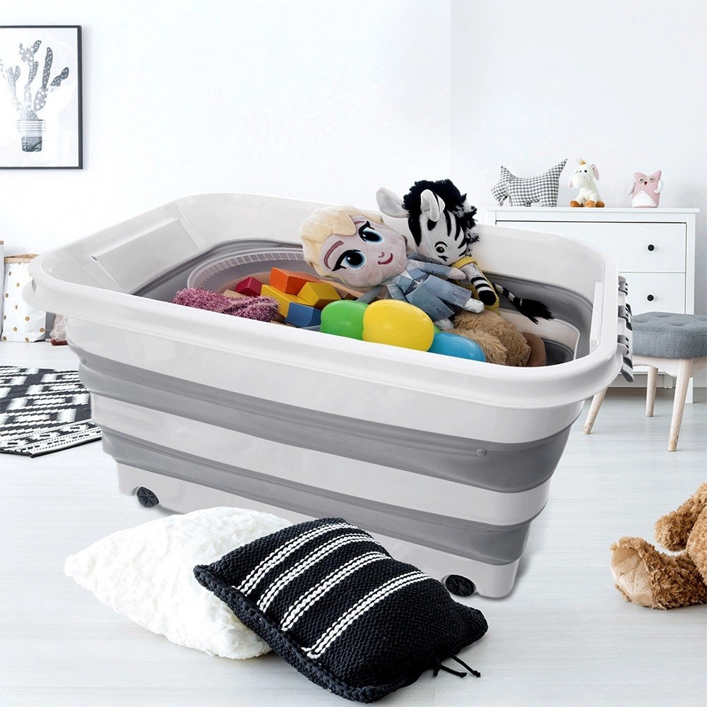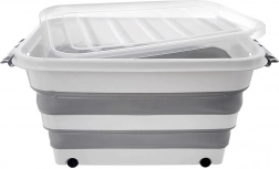 Pojemnik wykonany jest z trwałej gumy TPR w połączeniu z wysokiej jakości plastikiem, dzięki czemu sprawdzi się w codziennym użytkowaniu w domu, w warsztacie i w ogrodzie. Składana konstrukcja pozwala złożyć pojemnik do wysokości ok. 9,5 cm, co oszczędza miejsce, gdy nie jest używany. Idealny do przechowywania pościeli, zabawek, ubrań, tekstyliów, książek i innych domowych akcesoriów.