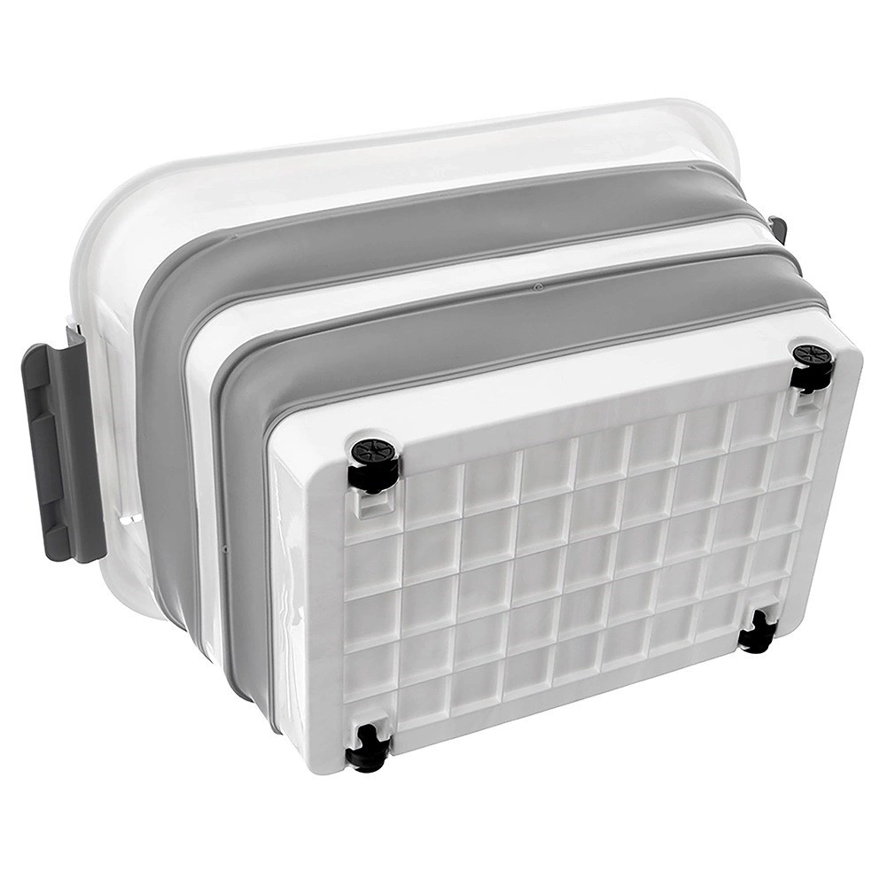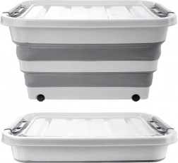 Składany pojemnik KEMP o pojemności 30 litrów pomoże utrzymać porządek w każdym pomieszczeniu. Ma przezroczystą pokrywę z dwoma solidnymi klipsami, która chroni zawartość przed kurzem i umożliwia szybką kontrolę wzrokową. Dzięki kółkom na dnie łatwo przesuniesz pojemnik pod łóżko, do szafy lub z pokoju do pokoju.