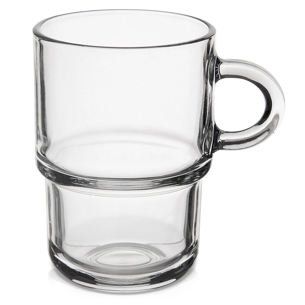 Szklanki można łatwo układać jedną na drugiej, oszczędzając miejsce w szafce — idealne do codziennego użytku.