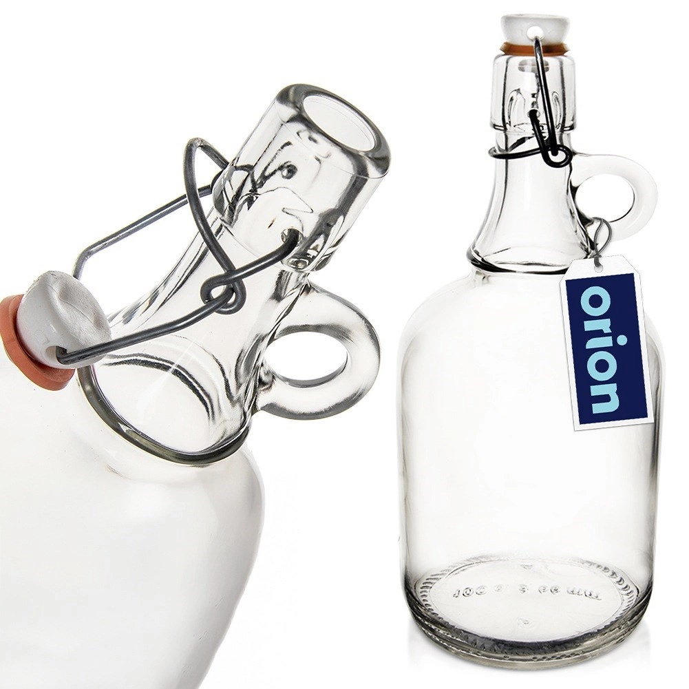 Elegancka szklana butelka o pojemności 500 ml z zamknięciem typu swing i silikonową uszczelką dla hermetycznego domknięcia. Wykonana z grubego, przezroczystego szkła, idealna do domowych soków, lemoniad, likierów, wina oraz wody. Praktyczne boczne ucho dla wygodnego nalewania i przenoszenia. Retro design pięknie podkreśla zawartość i pasuje zarówno do domu, jak i gastronomii.