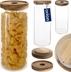 Praktyczny szklany pojemnik o pojemności 1,6 l z drewnianą pokrywką i silikonową uszczelką utrzyma Twoje produkty dłużej świeże i aromatyczne. Wytrzymałe szkło boro-krzemowe idealnie sprawdza się do codziennego użytku, przezroczyste ścianki umożliwiają natychmiastową kontrolę zawartości, a elegancki wygląd upiększy każdą kuchnię. Pojemnik nadaje się na kawę, makaron, orzechy, musli oraz inne suche składniki, a szklaną część można myć w zmywarce.