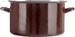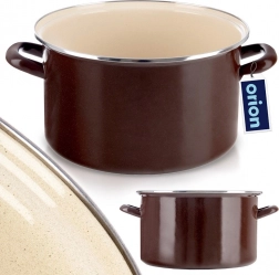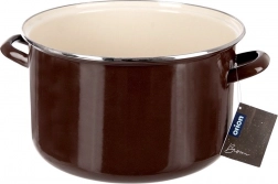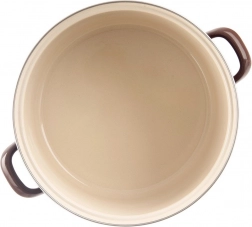 Emaliowany garnek w stylu retro zachwyca solidnym wykonaniem, dużą pojemnością i uniwersalnym zastosowaniem w kuchni. Brązowe wykończenie na zewnątrz, kremowe wnętrze oraz stalowa, nierdzewna obręcz nadają naczyniu elegancki wygląd. Emalia jest bezpieczna dla zdrowia i odpowiednia także dla alergików.