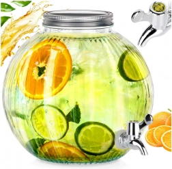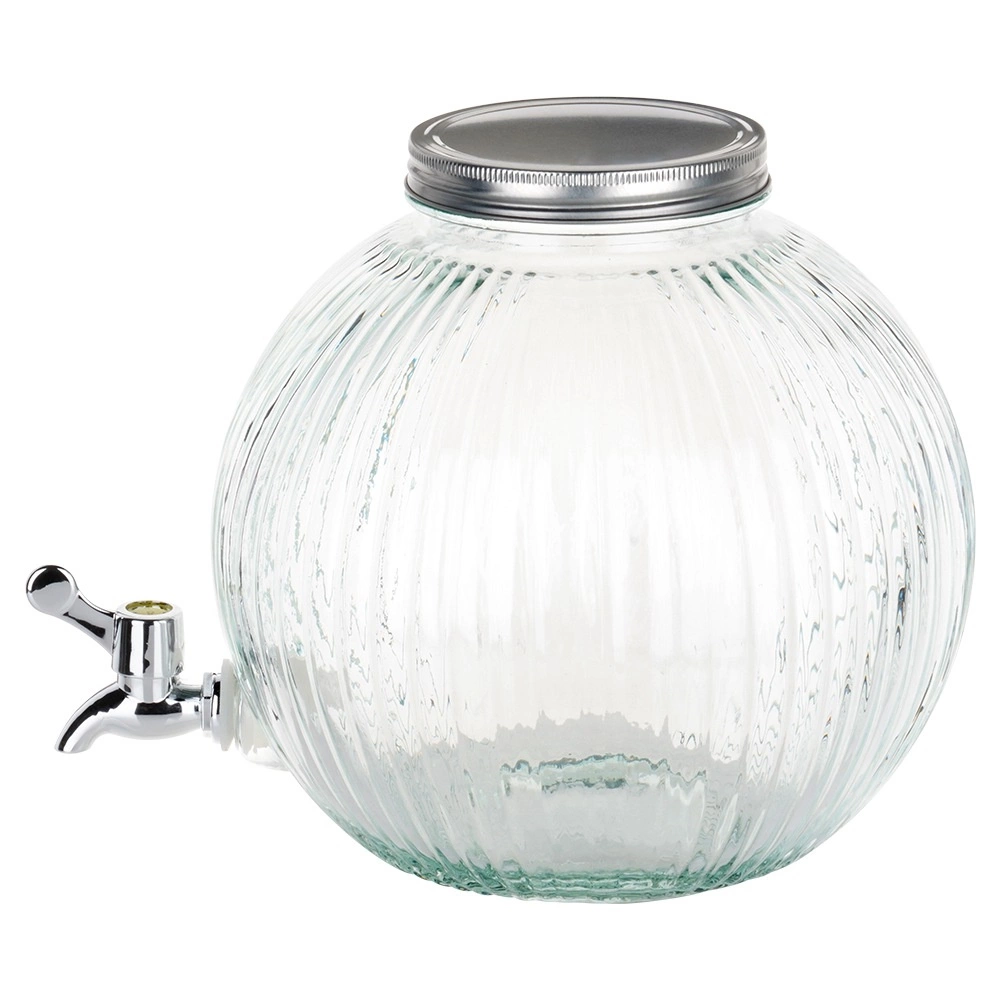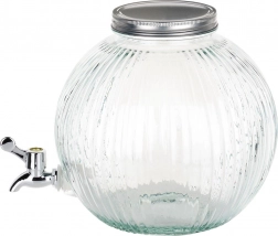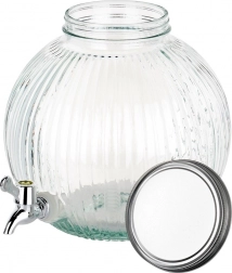 Elegancki szklany dystrybutor napojów o pojemności 5,5 l z metalową pokrywką i praktycznym kranikiem jest idealny do serwowania lemoniady, wody z owocami, ponczu czy mrożonej herbaty. Wytrzymałe żebrowane szkło, szeroki otwór ułatwiający napełnianie i czyszczenie oraz zakręcana pokrywka chroniąca przed owadami sprawiają, że ten pojemnik to doskonały wybór na przyjęcia w ogrodzie i domowe uroczystości.