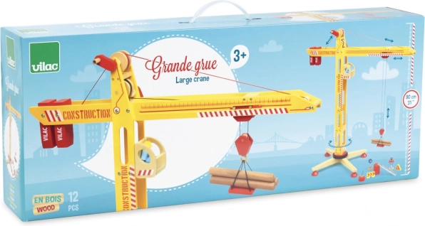 Duży drewniany dźwig VILAC zachwyci małych budowniczych realistycznym wykonaniem – od kabiny przez przeciwwagę po działającą wciągarkę. Dzięki szerokiej podstawie dźwig jest wyjątkowo stabilny i bezpieczny. Dzieci mogą swobodnie obracać całym dźwigiem, podnosić i przesuwać ładunki za pomocą dwóch płynnych pokręteł, co wspiera motorykę, wyobraźnię i zabawy w odgrywanie ról.
