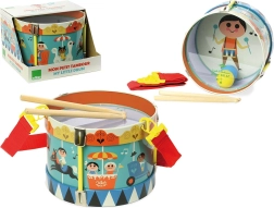 Ten piękny instrument jest doskonałym wyborem dla każdego małego muzyka. Metalowy bębenek jest dostarczany z pałeczką i regulowanym pasem dla wygodnego zawieszenia na szyi. Pobudza kreatywność, wyobraźnię oraz rozwija koordynację ręka-oko, motorykę precyzyjną i zręczność.