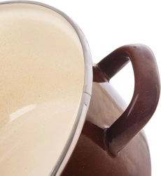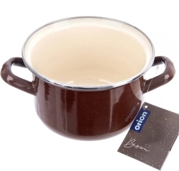 Garnek z serii BROWN łączy ponadczasowy wygląd z codzienną funkcjonalnością. Brązowa stal emaliowana ze srebrnym, nierdzewnym rantem i kremowym wnętrzem pasuje zarówno do nowoczesnych, jak i rustykalnych kuchni. Dzięki pojemności 1,4 l, średnicy 16 cm i wysokości 10 cm jest idealny do zup, sosów, kasz oraz mniejszych porcji dodatków.